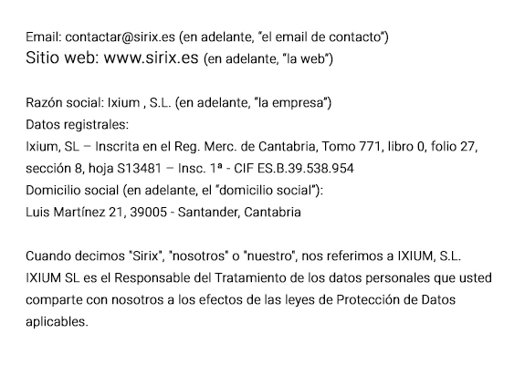 La presente Política de Privacidad establece las bases sobre las que la empresa encargada del sitio web, (ver datos completos en apartado 4, «DATOS»), en adelante, “nosotros”, «la empresa» o el «Responsable del Tratamiento», sociedad que actualmente opera en España, trata sus datos de carácter personal cuando nos los facilite durante su experiencia a través de la página web y sus posibles subdominios ( en adelante, “la Web”).
